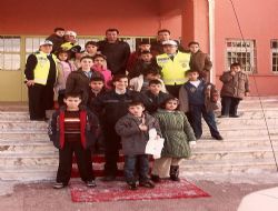 ERZURUM (İHA) - Erzurum Emniyet Müdürlüğü Trafik Tescil ve Denetleme Şube Müdürlüğünde görev yapan polisler, yuvada barınan çocukları ziyaret etti.Trafik polisleri beraberlerindeki 35 öğrenci ve 10 öğretmenle birlikte Zübeyde Hanım Çocuk Yuvasına ziyaret gerçekleştirdiler. Çocuklarla bir araya gelip onlara hediyeler veren trafik polisleri, trafik konusunda da minikleri aydınlattılar.