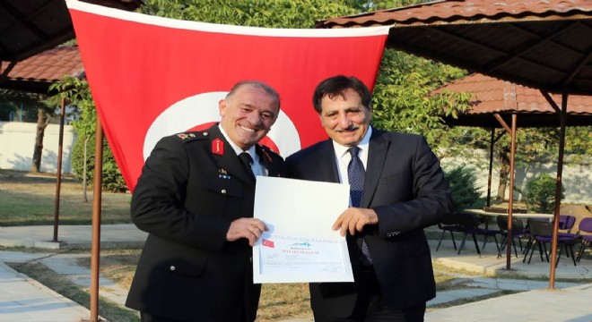 Gecenin sonunda Tümgeneral Ahmet Hacıoğlu’na Bursa Valisi İzzettin Küçük tarafından başarı belgesi takdim edildi