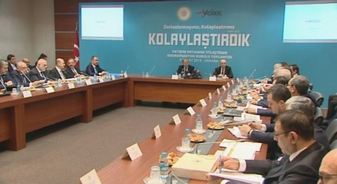 Yatırım Ortamını İyileştirme Koordinasyon Kurulu Toplantısı, Başbakan Yardımcısı Recep Akdağ başkanlığında Başbakan Yardımcısı Mehmet Şimşek, İçisleri Bakanı Süleyman Soylu, Adalet Bakanı Abdulhamit Gül, Çalışma ve Sosyal Güvenlik Bakanı Jülide Sarıeroğlu, Kalkınma Bakanı Lütfi Elvan ve Çevre ve Şehircilik Bakanı Mehmet Özhaseki'nin de katılımı ile gerçekleştirildi. İş ortamının iyileştirilmesi için çalışma yönteminde reform yapıldığını ifade eden Akdağ, bakanlarla birlikte gerçekleştirilen toplantılar neticesinde 2017-2018 için eylem ihtiva eden bir plan hazırladıklarını ve hedefin bu hazırlanan eylem planlarını hayata geçirmek olduğunu kaydetti. Akdağ, iş ortamının geliştirilmesi kapsamında düzenleme getirilecek alanlara yönelik başlıkları şirket kuruluşlarının kolaylaştırılması, kurtarma anlaşması-yeni konkordato, inşaat izinleri ve tapu işlemlerinin kolaylaştırılması, e-Belediye uygulamaları, telekominikasyon alt yapı izinleri, dış ticaretin kolaylaştırılması, finansmana erişiminin kolaylaştırılması ve vergi ödemelerinin basitleştirilmesi olarak sıraladı. Akdağ, "Yatırım Ortamını İyileştirme Kurulu 2016 yılına kadar Ekonomi Bakanlığının başkanlığında çalıştı. Burada daha çok teknik çalışmalar vardı. 2016 yılından itibaren bu kurul başbakan yardımcısı başkanlığında çalışıyor. Bakan arkadaşlarımın da katılmasıyla daha güçlü bir yapıyla çalışıyoruz. TOBB'un koordinesi ile TİM, TÜSİAD, YASED ile bir araya gelerek bir sipariş listesi oluşturuyor. Bu yıl bakış açımızı biraz daha geliştirerek çalışma şeklimizde bir reform yaparak işe başlıyoruz. Bakanlarımızla bu kapsamda birçok toplantılar gerçekleştirdik. Dünya Bankasının iş yapma kolaylığı endeksinde Türkiye'yi 2 yıl içinde ilk 20'ye sokmayı hedef aldık. Türkiye'nin bunu hak ettiğine inanıyoruz. Bu kapsamda 100'ün üzerinde eylem planı hazırladık" şeklinde konuştu.