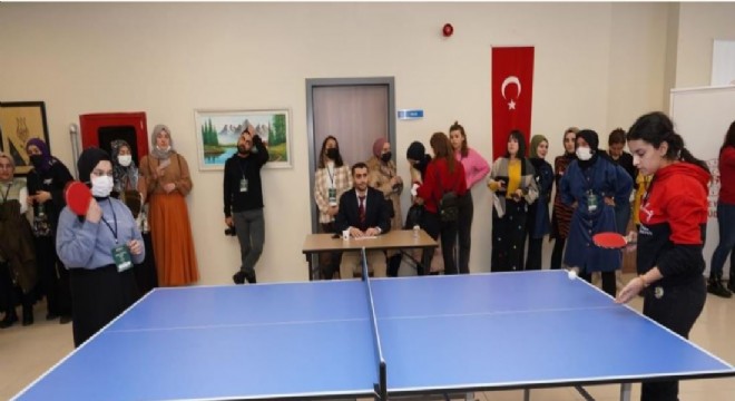 Erzurum GSİM’nin ev sahipliğini yaptığı ‘Güzel Sanatlar Kampı’na katılan Osmaniye, Hatay, Muğla, Bolu, K.Maraş, Samsun, Sinop, Zonguldak ve Uşak’tan katılan kız öğrenciler masa tenisi turnuvasında ter döktü.