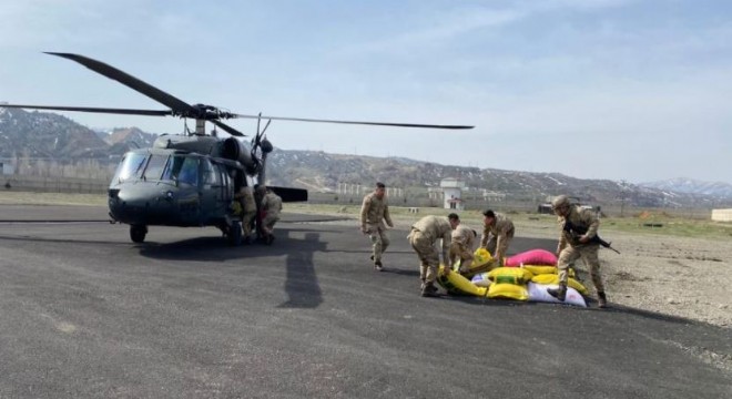 Bingöl’ün Genç ilçesinde kar nedeniyle yolun kapalı olmasından dolayı hayvanlarına yem ulaştıramayan üreticinin imdadına jandarma yetişti. Askeri helikoptere yüklenen yemler köye ulaştırıldı.