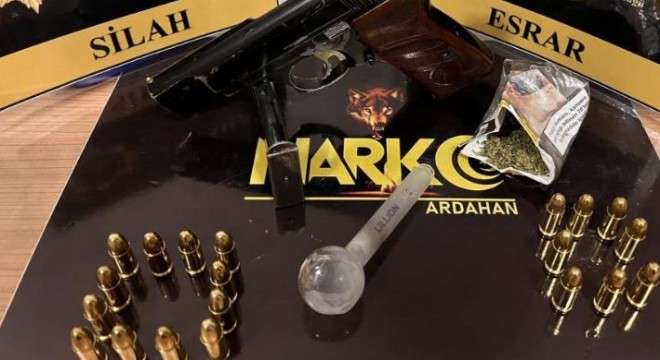 Ardahan il Emniyet Müdürlüğü Narkotik Suçlarla Mücadele Şubesi ekiplerince kentte uyuşturucu kullanımı ve ticaretini önlemeye yönelik operasyon düzenlendi. Ekipler, C.U, E.H, E.Ç. ve M.Y.K'nin üzerinde yaptıkları aramada, bir miktar esrar ve bir ruhsatsız tabanca ile 30 mermi ele geçirdi.