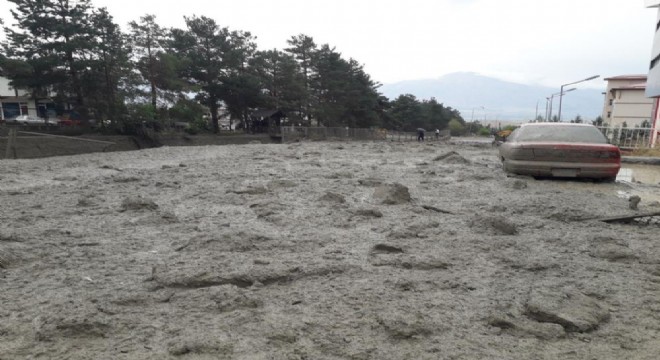 Erzincan’ın Üzümlü ilçesinde yaşanan selden köprüler ve yollar zarar gördü. Park halindeki bir otomobil sel sularına kapıldı.