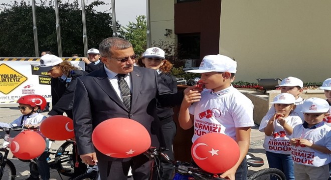 Konuşmanın ardından Uzunkaya, çocuklara bisikletlerini takdim etti. Bisikletlerine binen çocuklar kırmızı düdüklerini de çalmayı ihmal etmedi.