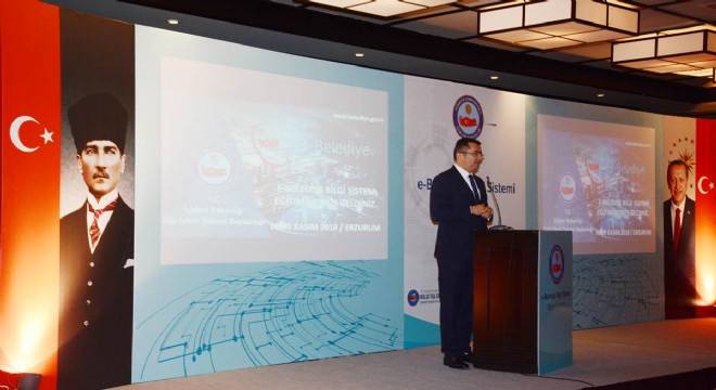 Konuşmaların ardından İçişleri Bakanlığı Bilgi İşlem Dairesi Başkanı Osman Hacıbektaşoğlu tarafından e-belediye bilgi sistemi projesi katılımcılara tanıtıldı.