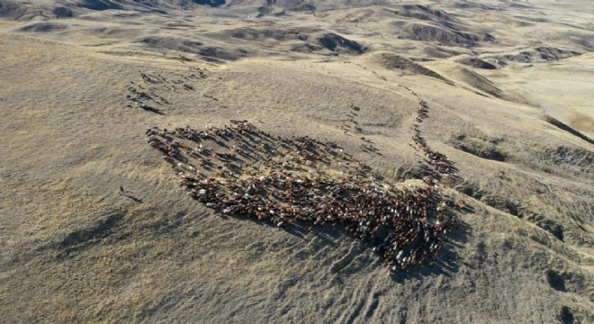 Erzurum meralarında beslenen büyükbaş ve küçükbaş hayvanlar dron ile havadan görüntülendi. Havadan görüntülenen meralar eşsiz görüntüler ortaya çıkarttı.