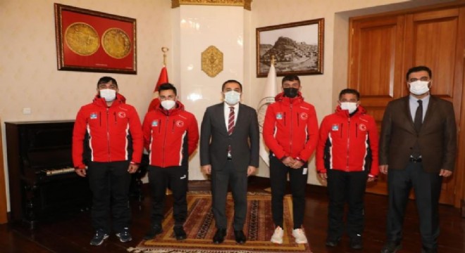 Kars Valisi ve Belediye Başkan Vekili Türker Öksüz, Erzurum'da 02-03 Ocak 2022 tarihlerinde yapılan seçmelerde başarılı olan sporcuları makamında kabul etti.
