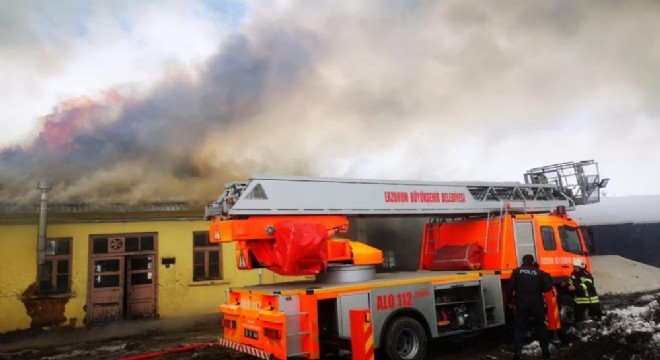 Erzurum’da Devlet Demiryollarına ait deponun çatısında çıkan yangın kontrol ...