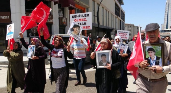 Evlatları değişik tarihlerde PKK terör örgütü tarafından dağa kaçırılan ve sayıları 32 olan aileler, kentin en işlek noktası olan Cumhuriyet Caddesi'nde bir araya geldi. Ellerindeki dövizlerle yürüyüş yapan aileler, bir yandan da HDP ve PKK aleyhine slogan attı. PKK tarafından 13 yaşında dağa kaçırılan kızı Şerima için eylemde olan anne Nazlı Sancar, her hafta bir umutla buraya geldiklerini ifade ederek, “13 yaşında benim kızımı elini kolunu bağlayarak dağa götürdüler. Ben her gün can çekişiyorum. Belki evlatlarımız bizi görüp gelir diye bir umut içinde geliyoruz. İki ay önce kızımın ölümünü sitelere attılar. Ama ben bu katillere, bu zalimlere asla inanmıyorum. Ben devletime inanıyor, devletime güveniyorum. Benim Şerima'mın ya ölüsünü ya dirisini PKK’dan, HDP’den alacağım. Biz ‘Ya zafer ya ölüm’ demişiz. Sonsuz kadar da ya zafer, ya ölüm olacak” dedi.