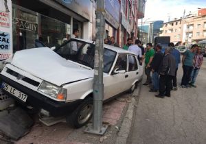 Erzurum'da bir sürücü otomobiliyle seyir halindeyken fren yerine gaza basınca mağazaya daldı.