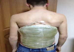 ERZURUM (İHA) - Erzurum’da polisin dikkati üzerine vücuduna streç film ile 5 kilogram 300 gram esrar maddesini saklamaya çalışan iki kişi kıskıvrak yakalandı.