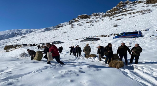 Tortum ilçesinde çetin kış şartlarında yaşamak zorunda kalan yaban hayvanları için doğaya yiyecek bırakıldı.