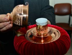 Günümüzde yaygın olmamakla birlikte geçmişte önemli bir yer tutar kahve kültürü. Nezaketi, inceliği ve zarafeti ikram edilen kahvenin fincanından ve fincan kabından görmek mümkündür. Günümüzde hızlı yaşamın sonucu birçok gelenek, kahve içme ve kahvenin sunumu gibi kaybolup gitmiş. Bu kültürü turistik amaçlı da olsa canlandırmak için çaba harcayan Yakutiye Belediye Başkanı Ali Korkut’a Yakutiye Belediyesi Meslek Edinme ve Beceri Kurslarından sürpriz yapıldı. Makine ve El Nakışı hocası Ayşe Daş, kursiyerler Fatma Kadı, Halegül Dürüst, Hutem Laloğlu, kahve fincanının içine yerleştirildiği silikon süngerin üzerine kadife kumaşla kaplanmış bakır zarflı porselen fincan, bakır kapak ve üzerine yerleştirilmiş püskülüyle dekoratif geleneksel kahve fincan seti hediye ettiler. Kurs hocası Ayşe Daş ve kursiyer hanımlar, Ali Korkut’a ev hanımlarına verdikleri destekten dolayı teşekkür etmek amacıyla böyle bir çalışma yaptıklarını söylediler.