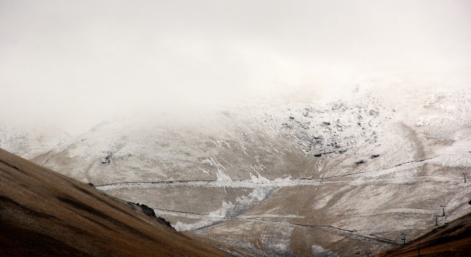 Erzurum'da, Türkiye'nin önemli kış turizm merkezlerinden Palandöken Dağı'nın yüksek kesimlerine mevsimin ikinci karı yağdı.