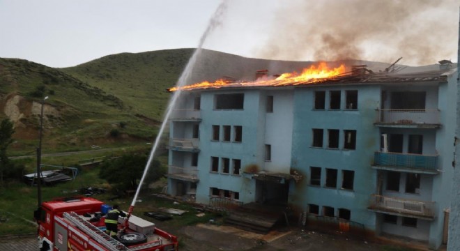 Erzurum’un Oltu ilçesinde, İlçe Tarım ve Orman Müdürlüğüne ait kullanılmayan lojmanın sökülen çatısına yıldırım düşmesi sonucu çatı alev aldı.