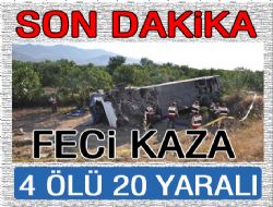 ERZURUM (İHA) - Erzurum-Erzincan karayolunda İran plakalı tur otobüsünün devrilmesi sonucu meydana gelen trafik kazasında biri Türk emniyet amiri 4 kişi öldü, yaklaşık 20 kişi yaralandı.