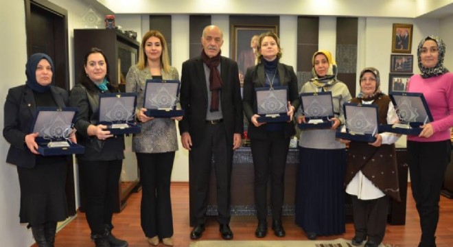 Erzurum Ticaret ve Sanayi Odası (ETSO) Yönetim Kurulu Başkanı Lütfü Yücelik, 8 Mart Dünya Kadınlar Günü münasebetiyle Erzurum Kadın Girişimciler Kurulu (KGK) İcra Komitesi Başkan ve üyelerine, çalışmalarından dolayı teşekkür plaketi verdi.