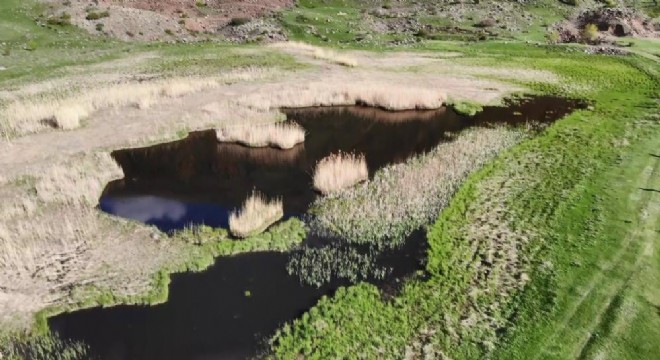 Erzurum'un Tortum ilçesi Zökün Gölü'ndeki 6 yüzen ada, manzarasıyla göz kamaştırıyor. Doğa harikası olan adalar drone ile görüntülendi.