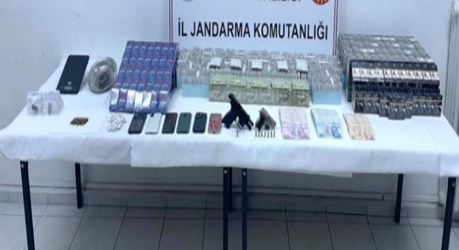 Bayburt İl Jandarma Komutanlığı'nca görevlendirilen bir ekip ile İstanbul İli, Pendik İlçesinde şüpheli şahısları takibe aldı. Bayburt ve İstanbul'da 5 şüpheliye ait 8 ev, 1 iş yeri ve 4 araçta gerçekleştirilen eş zamanlı operasyon sonucunda; 31 gram kubar esrar, 2 gram metamfetamin, 1 adet uyuşturucu tartımında kullanılan hassas terazi, 2 adet esrar öğütücüsü, 2 adet ruhsatsız tabanca, 6 adet cep telefonu, suçtan elde edildiği değerlendirilen 50 bin lira para, 25 bin adet kaçak sigara ve çok sayıda uyuşturucu madde imal ticaretine yönelik olduğu değerlendirilen malzeme ele geçirildi.